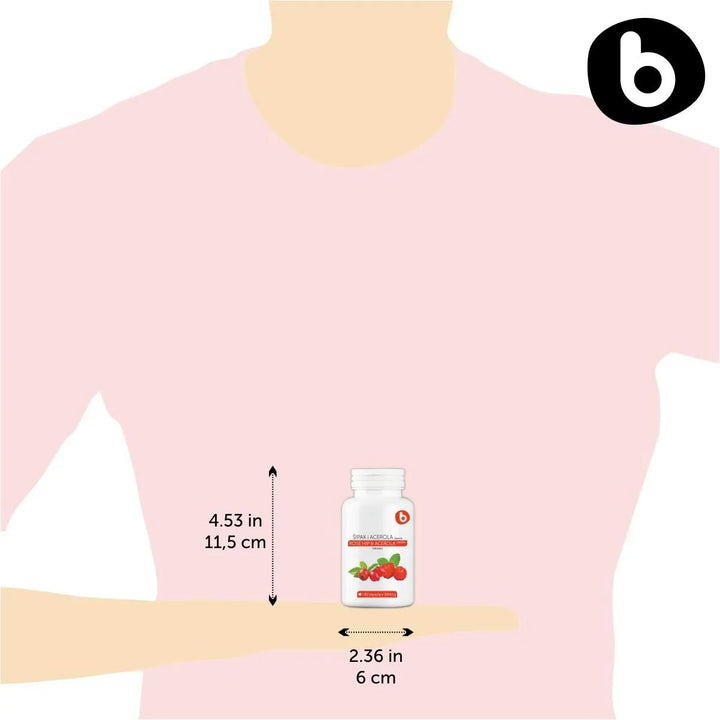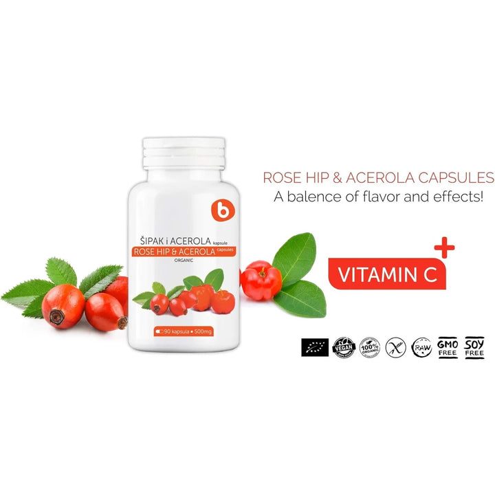b Cápsulas orgánicas Rose HIPS y Acerola Vitamina C 1000mg – Suplemento de vitamina C a base de plantas sin ácido ascórbico – Apoya el bienestar general – Sin OMG, sin gluten, 90 cápsulas veganas