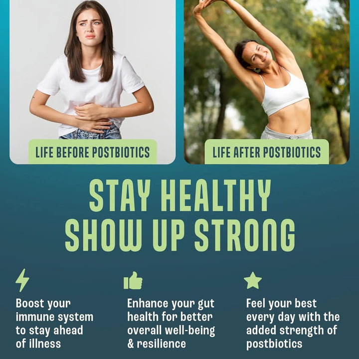 ¿Sufres de hinchazón, malestar digestivo o un sistema inmunológico debilitado? Imagina un producto que no solo alivia estos problemas, sino que revoluciona por completo tu bienestar intestinal. Nuestras Cápsulas Postbióticas son el resultado de años de investigación científica, diseñadas para ofrecer 200 veces más beneficios que los probióticos y prebióticos convencionales. Este no es otro suplemento más; es el futuro de la salud digestiva, respaldado por una fórmula patentada y ingredientes de la más alta calidad.
