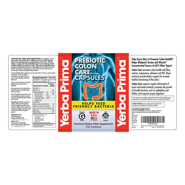 Las Cápsulas Prebióticas para el Cuidado del Colon actúan en tres fases clave: limpieza, nutrición y mantenimiento. Las fibras solubles e insolubles absorben agua, aumentando el volumen de las heces para facilitar su eliminación mientras 'barren' las paredes del colon. Los prebióticos FOS sirven como alimento para las bacterias beneficiosas de tu intestino, promoviendo un equilibrio saludable. El calcio contribuye a movimientos intestinales suaves, evitando molestias.