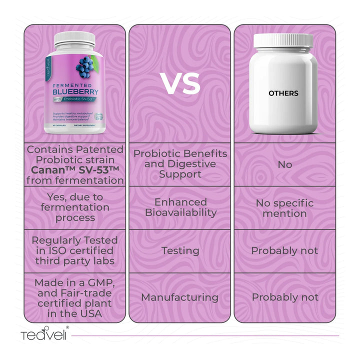 Si has probado otros probióticos sin resultados visibles, aquí encontrarás la diferencia. Nuestra fórmula limpia, libre de OMG, gluten y aditivos artificiales, garantiza que solo recibas lo que tu cuerpo necesita: arándanos silvestres canadienses fermentados en su estado más puro. Ideal para quienes valoran la transparencia y eficacia en sus suplementos diarios.