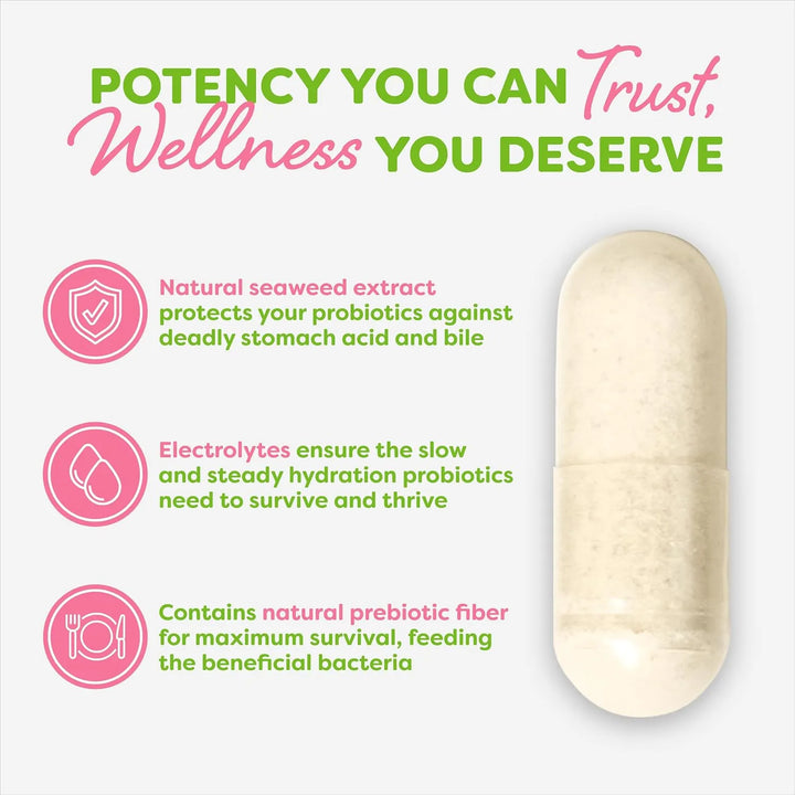 Al ingerir la cápsula, las cepas probióticas (lactobacilos y bifidobacterias) viajan protegidas por el extracto de algas hasta el intestino, donde colonizan y restauran el equilibrio de tu microbiota. Esto no solo mejora la digestión, sino que también previene infecciones vaginales al regular el pH y fortalecer las barreras naturales. Los prebióticos actúan como alimento para estos microorganismos beneficiosos, mientras que los electrolitos mantienen su hidratación.