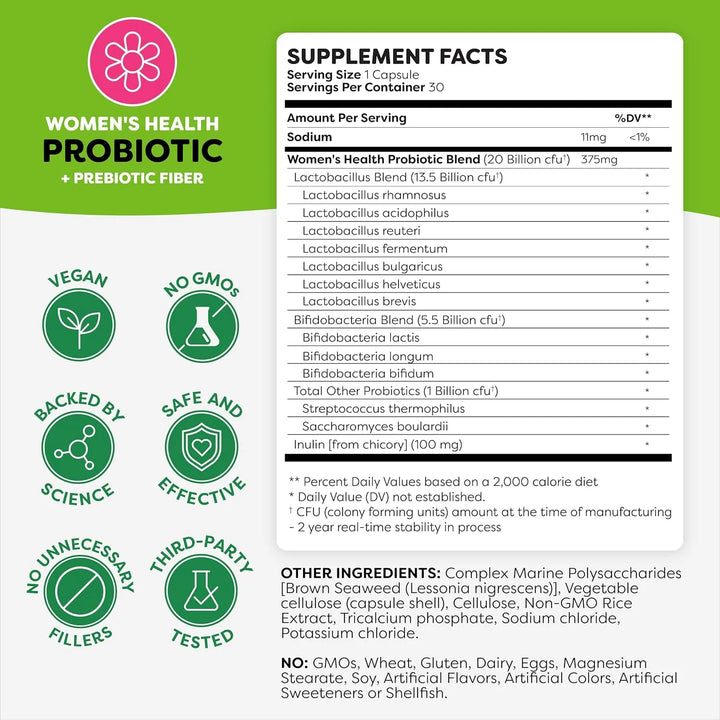 Con 20 mil millones de UFC y 12 cepas probióticas clínicamente estudiadas, cada cápsula actúa como un escudo protector para tu flora vaginal y intestinal. La fórmula vegana, libre de alérgenos comunes como lácteos o gluten, incluye prebióticos y extracto de algas marinas para garantizar que los probióticos sobrevivan al ácido estomacal y lleguen vivos a donde más los necesitas. ¿Lo mejor? Solo necesitas una cápsula al día, sin refrigeración, para notar la diferencia en tu comodidad íntima, digestión y energía.