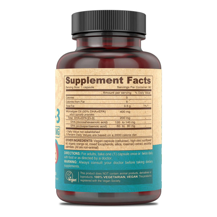 ¿Cansado de los suplementos de omega 3 que dejan un regusto desagradable o que no se adaptan a tu estilo de vida vegano? Descubre las cápsulas de DHA y EPA de liberación retardada, diseñadas para ofrecerte todos los beneficios del omega 3 sin comprometer tus valores ni tu paladar. Este producto no solo es 100% vegano, sino que también está libre de contaminantes oceánicos, gracias a su origen en algas cultivadas de manera sostenible.