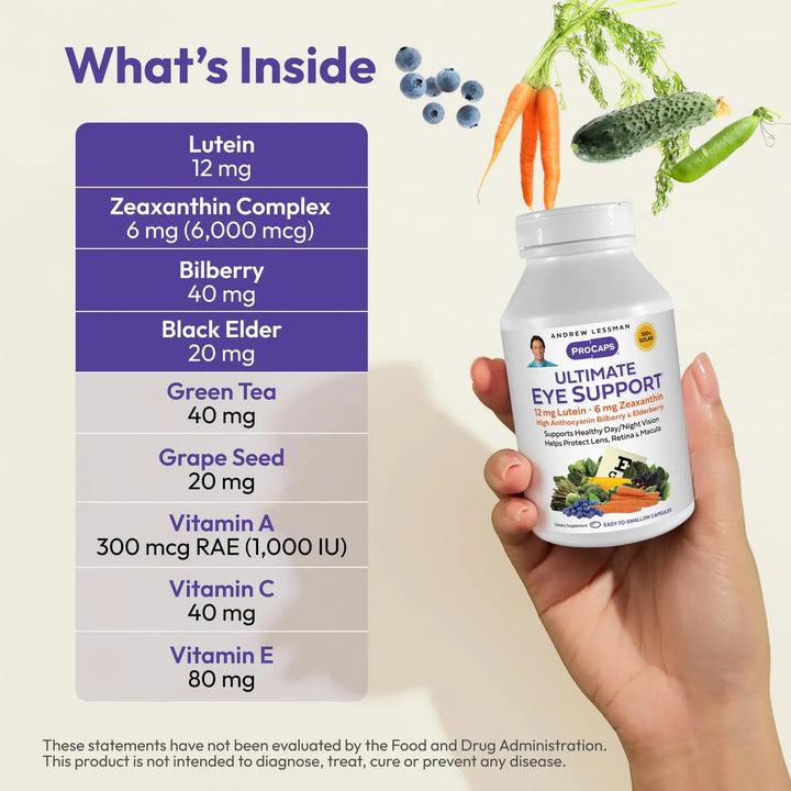 Imagina despertar cada mañana con ojos frescos y llenos de vida, sin esa molesta sensación de sequedad o fatiga. Nuestra fórmula única combina 10 mg de luteína y 5 mg de zeaxantina, nutrientes clave que se concentran en la retina para proteger tus ojos de la luz azul y los radicales libres. Además, el extracto de bilberry mejora tu visión nocturna, permitiéndote ver con claridad incluso en condiciones de poca luz.