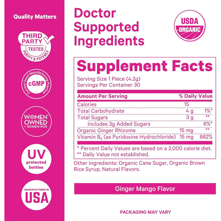 - 🌿 Alivia las náuseas matutinas y mareos de forma natural y segura, gracias al jengibre orgánico y la vitamina B6.