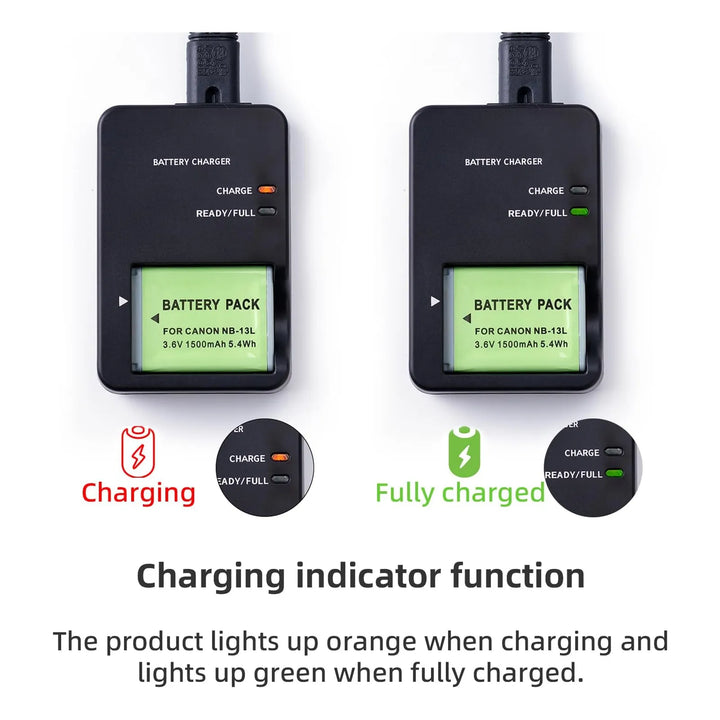 El cargador NB-13L utiliza un sistema de carga inteligente que detecta cuando la batería está llena, cortando automáticamente la energía para evitar daños. Su tecnología de protección multicapa actúa como un guardián, previniendo sobrecalentamientos y fluctuaciones de voltaje.