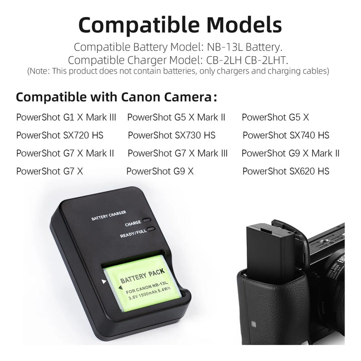 - ⚡ Universal y Versátil: Compatible con más de 10 modelos Canon. ¡Un solo cargador para todas tus aventuras!