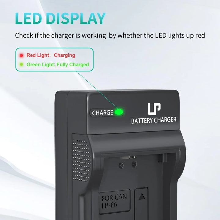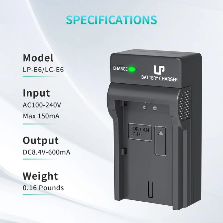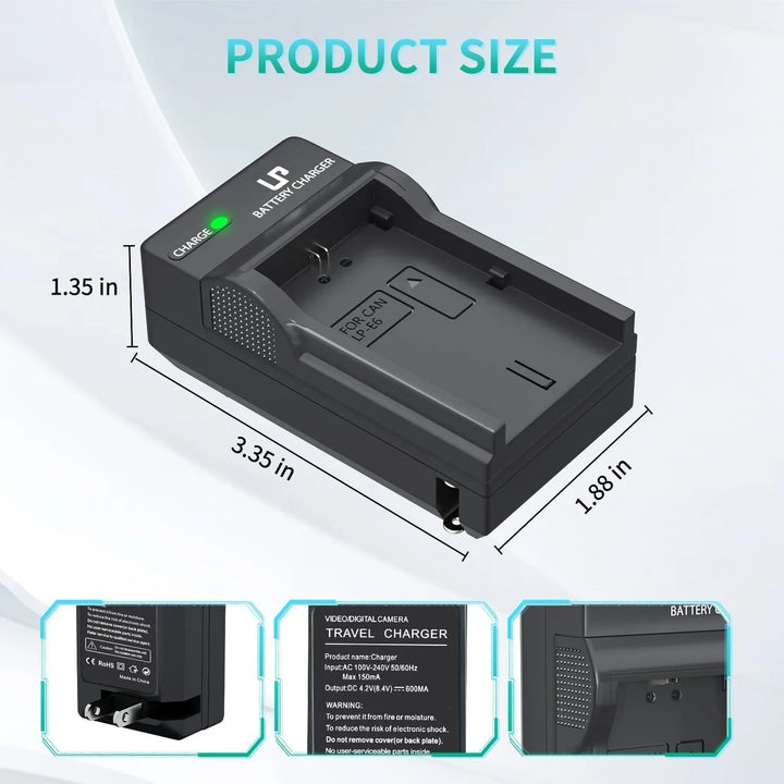 Imagina nunca más perder esa toma perfecta por quedarte sin batería. Con nuestro cargador de batería LP-E6 compatible con Canon, no solo cargarás tus baterías de manera eficiente, sino que también protegerás tu inversión en equipos fotográficos. Diseñado para fotógrafos exigentes como tú, que valoran la calidad, la seguridad y la portabilidad.