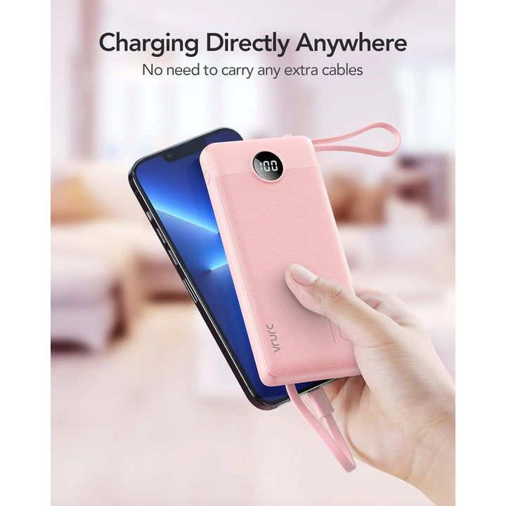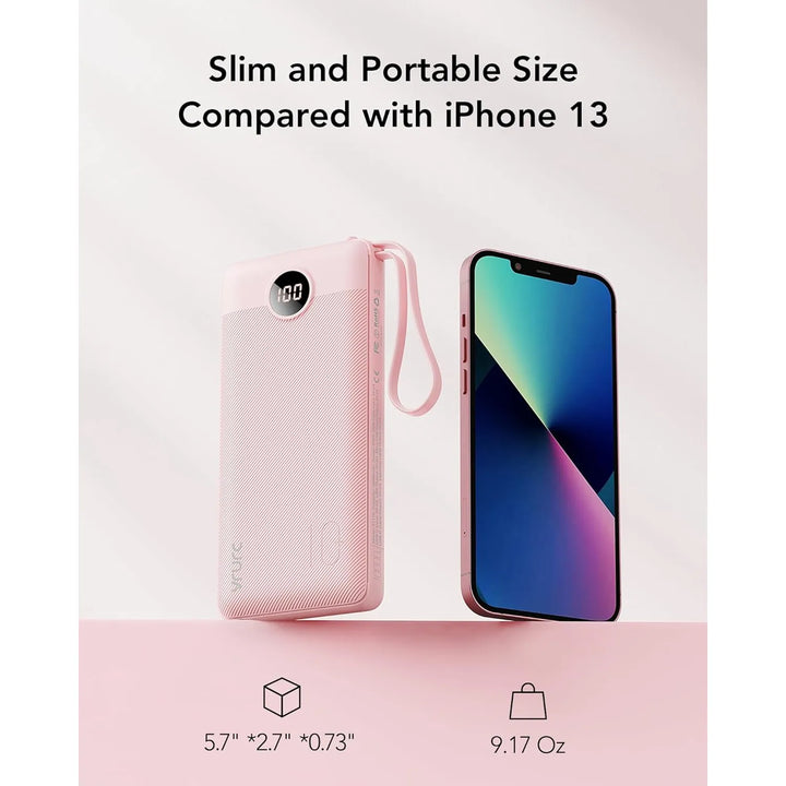 Este cargador portátil transforma tu experiencia de carga con tecnología inteligente. Su batería de alta capacidad almacena energía suficiente para recargar tu teléfono hasta 3 veces, mientras que los cables integrados y puertos adicionales permiten conectar múltiples dispositivos sin complicaciones. La pantalla LED te brinda información en tiempo real, y su diseño compacto lo hace perfecto para llevar a cualquier parte.