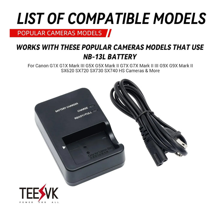 - Voltaje de salida: DC 4.2V 0.7A, optimizado para baterías NB-13L 🔋