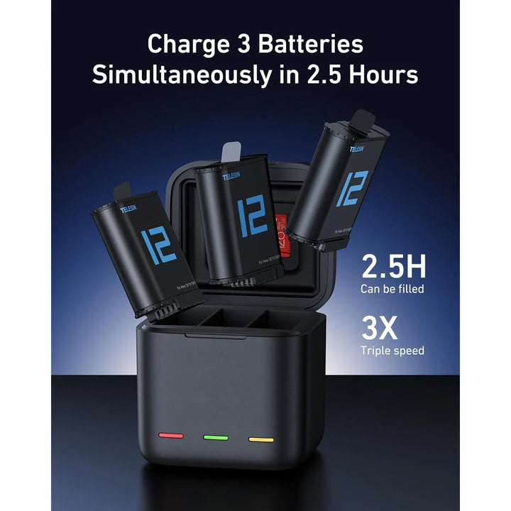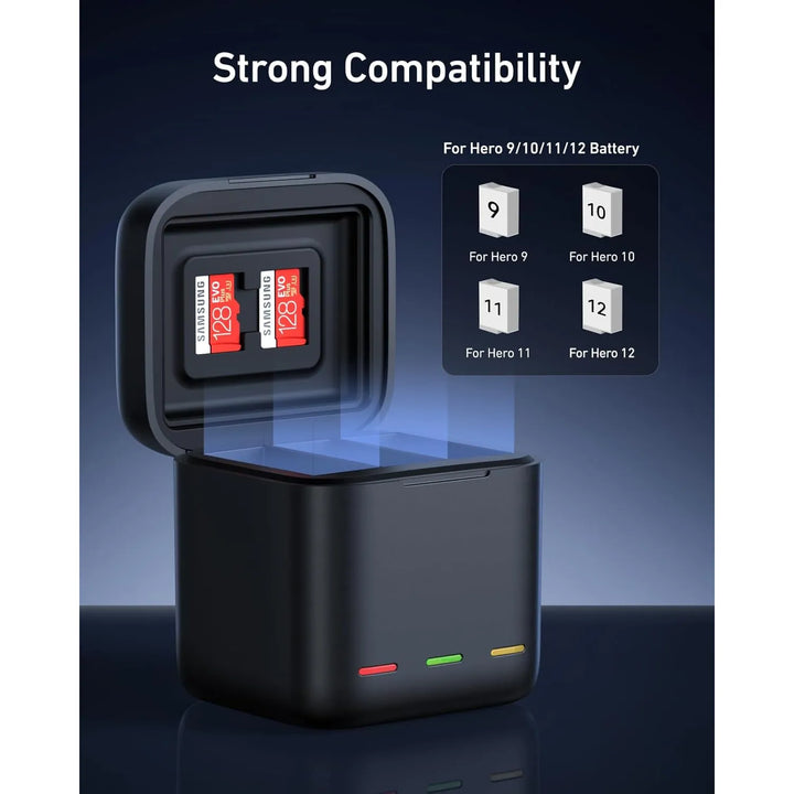 Imagina nunca perder un momento importante porque tu batería se agotó. Con el Cargador Triple Estuche para Baterías GoPro Hero 12/11/10/9, no solo cargas tres baterías al mismo tiempo, sino que también las proteges del agua, polvo y golpes. Diseñado para aventureros como tú, que exigen lo mejor para sus equipos.