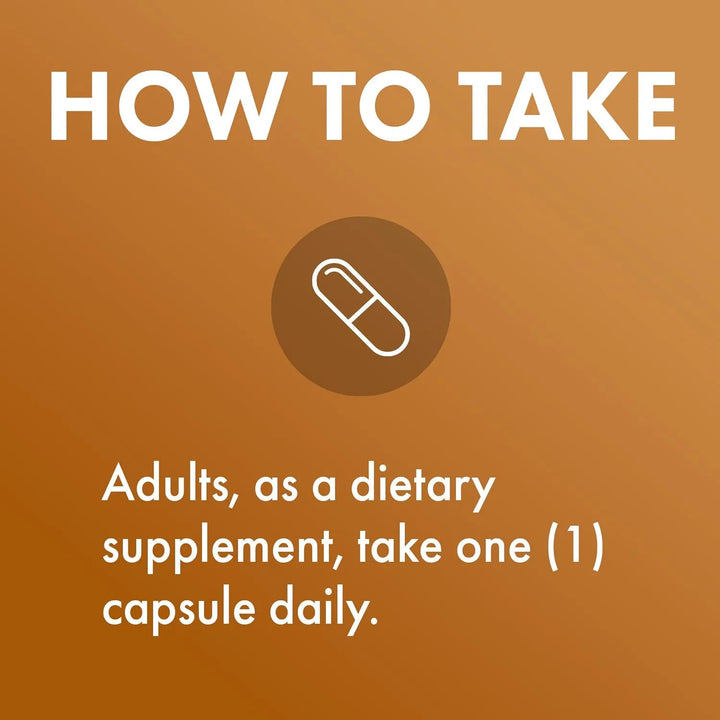 - Consume 1 cápsula al día, preferiblemente con tu comida principal para mejorar la absorción.