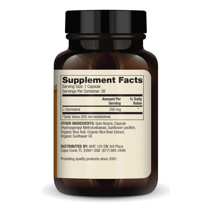 - 250 mg de carnosina pura por cápsula, en un envase de 30 unidades para un mes de tratamiento 📅