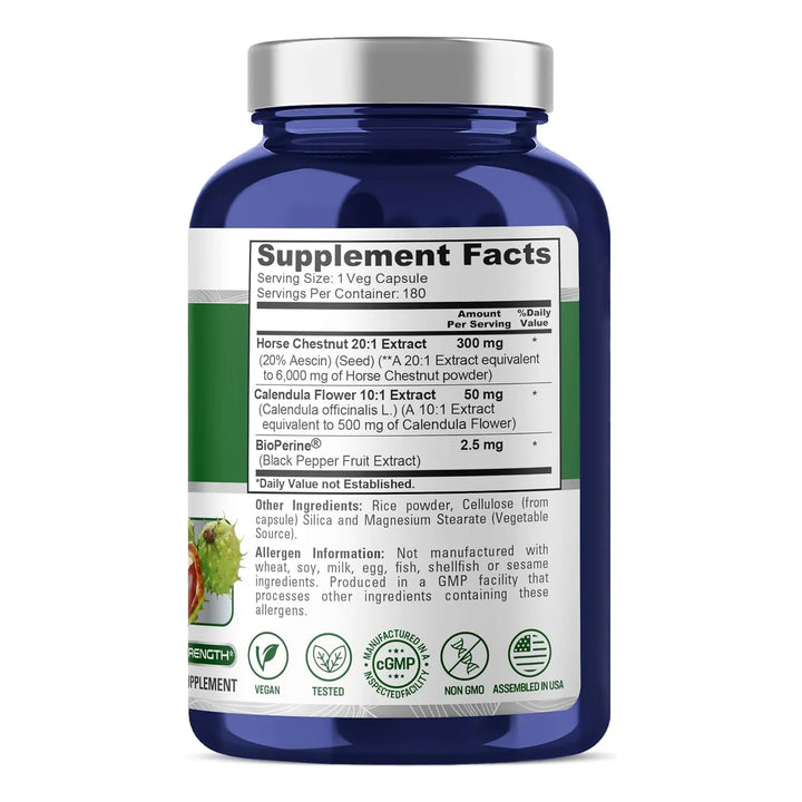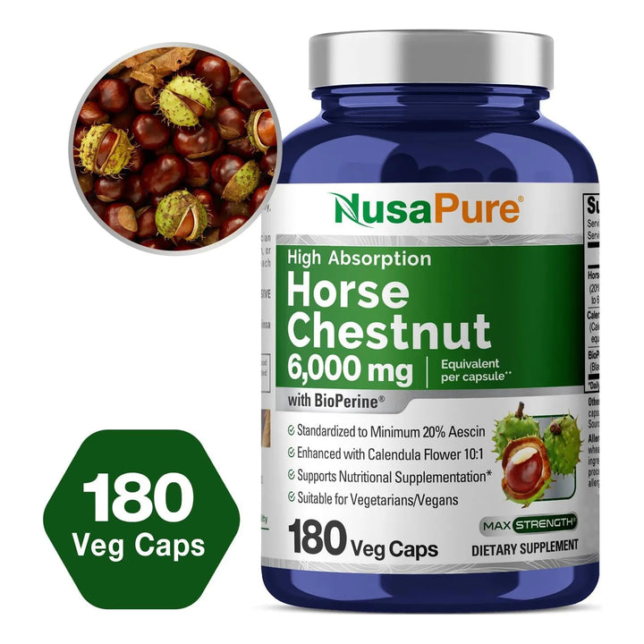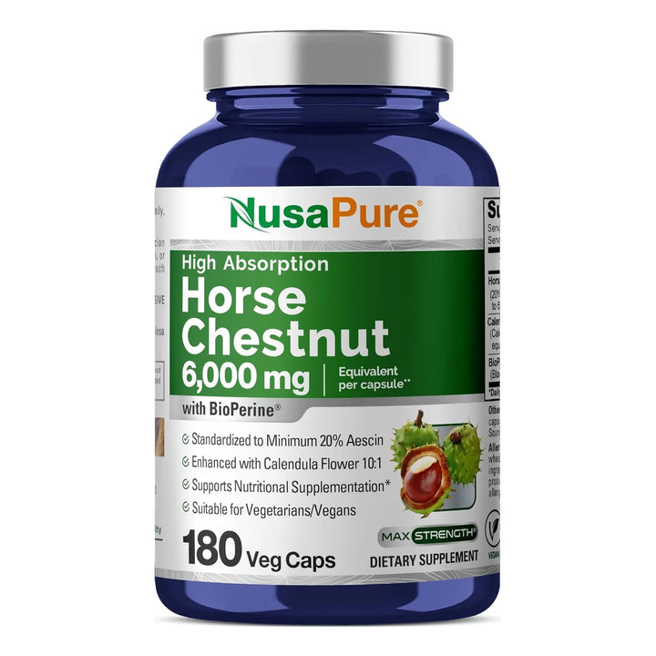 - 🌿 Potencia tu bienestar con 6000mg de Castaño de Indias por cápsula, la dosis ideal para resultados visibles.