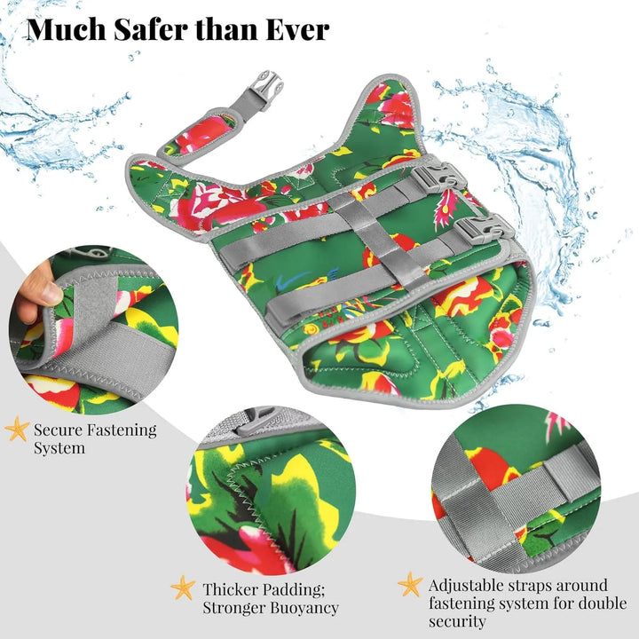 - 🌿 Diseño Elegante: Colores vibrantes y patrones únicos hacen que tu perro luzca adorable mientras nada.