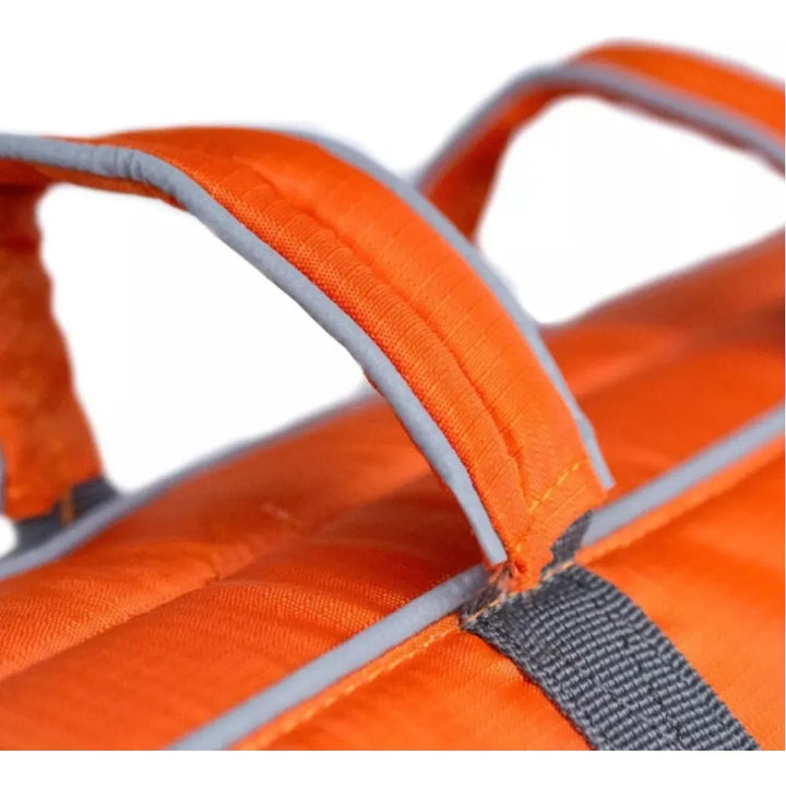 - 🌈 Alta Visibilidad: El color naranja brillante y las bandas reflectantes aseguran que tu mascota sea visible en condiciones de poca luz o aguas turbias.