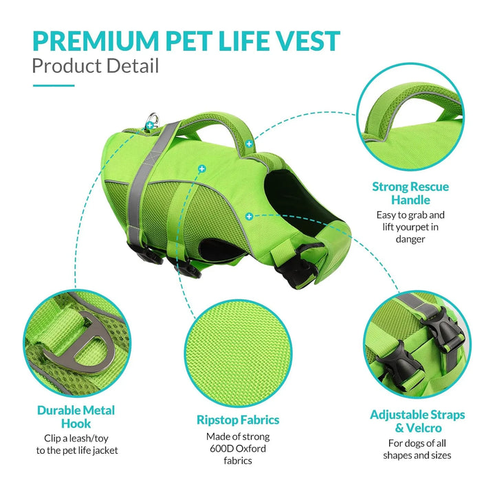 - 🛡️ Resistencia Antidesgarros: Materiales duraderos que protegen a tu mascota en cualquier aventura acuática.