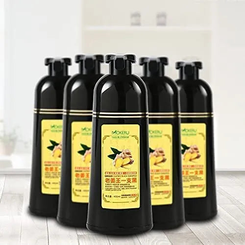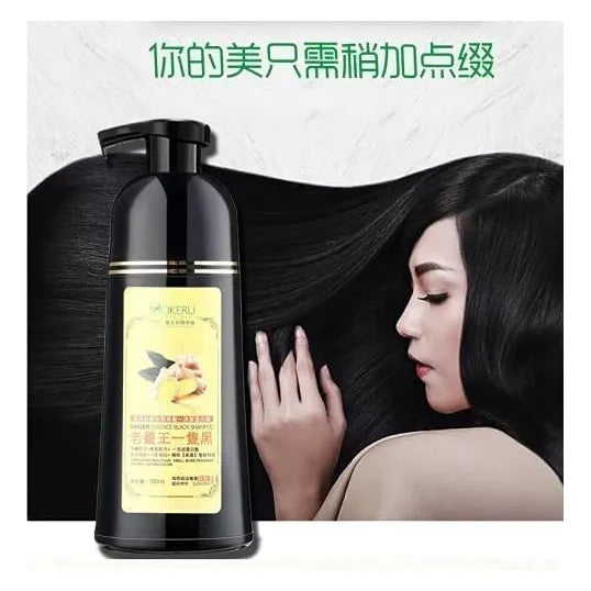 ¿Cansado de los tintes químicos que dañan tu cabello y pierden su color en semanas? Imagina lucir un negro profundo y vibrante, sin maltratar tu melena y en solo 5 minutos. El Champú de Jengibre Negro MOKERU es la solución que estabas esperando. Con ingredientes 100% naturales como esencia de jengibre, galla, flor de henna y carbón de bambú, no solo obtendrás un color duradero, sino que también nutrirás tu cabello desde la raíz.