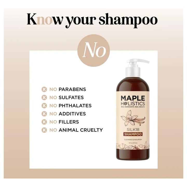 Los aminoácidos de seda penetran en la fibra capilar, reparando las cutículas dañadas y creando una barrera que retiene la humedad. Esto no solo mejora la apariencia inmediata de tu cabello, sino que también lo fortalece desde adentro, previniendo futuros daños. La fórmula equilibrada limpia suavemente sin despojar a tu cabello de sus aceites naturales, manteniendo el cuero cabelludo saludable.