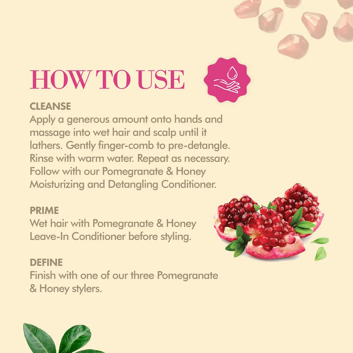 La combinación de extracto de granada (rico en antioxidantes) y miel (humectante natural) restaura la fibra capilar desde dentro, mientras el aceite de babassu sella la humedad. La proteína de seda alisa la cutícula, reduciendo la fricción y facilitando el desenredo. Así, cada lavado reconstruye, protege y define tus rizos sin esfuerzo.