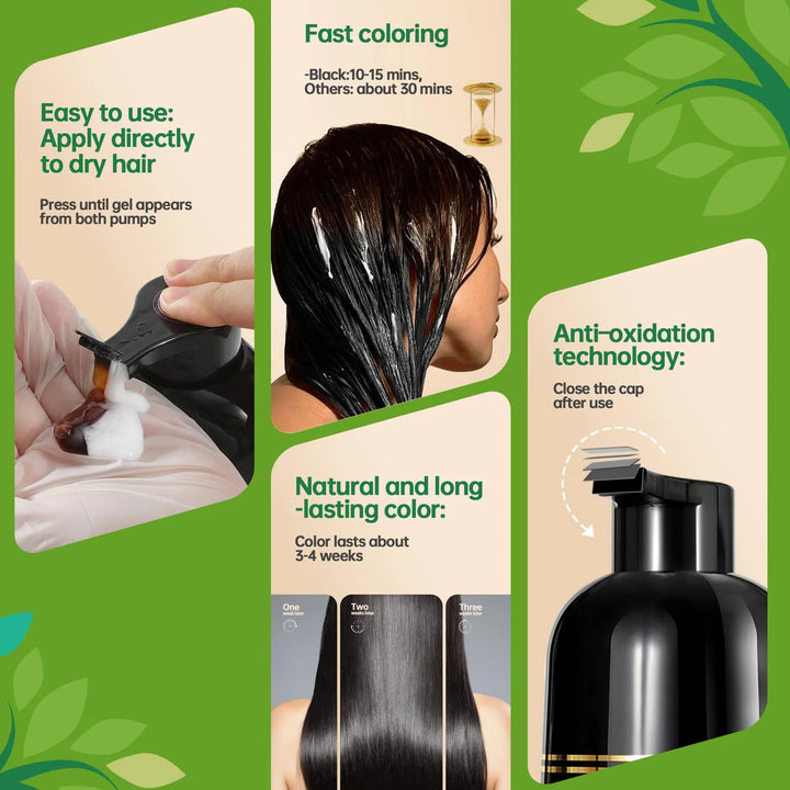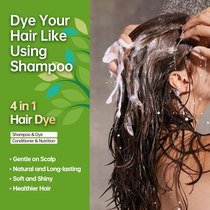 - ⏱️ Todo en uno: Tinte, champú, acondicionador y tratamiento en un solo producto. ¡Más eficiencia, menos estrés!