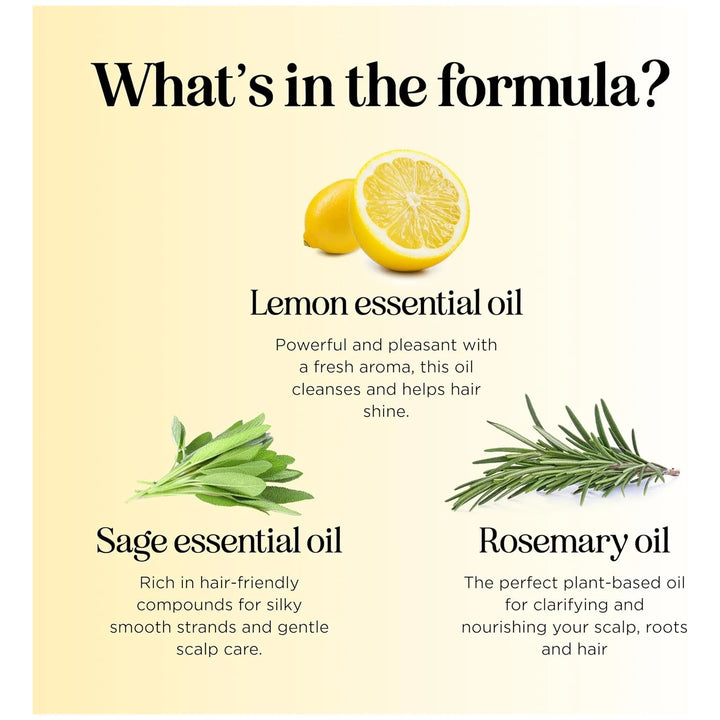 Este champú actúa penetrando en cada hebra de cabello y en los poros del cuero cabelludo, eliminando el exceso de grasa y acumulación de productos. Los aceites esenciales de romero y árbol de té tienen propiedades antibacterianas y antifúngicas, lo que ayuda a reducir la caspa y la irritación. Además, las proteínas vegetales fortalecen el cabello desde la raíz, dejándolo más resistente y con un brillo natural.