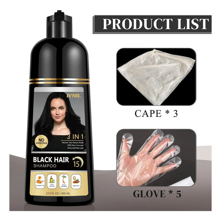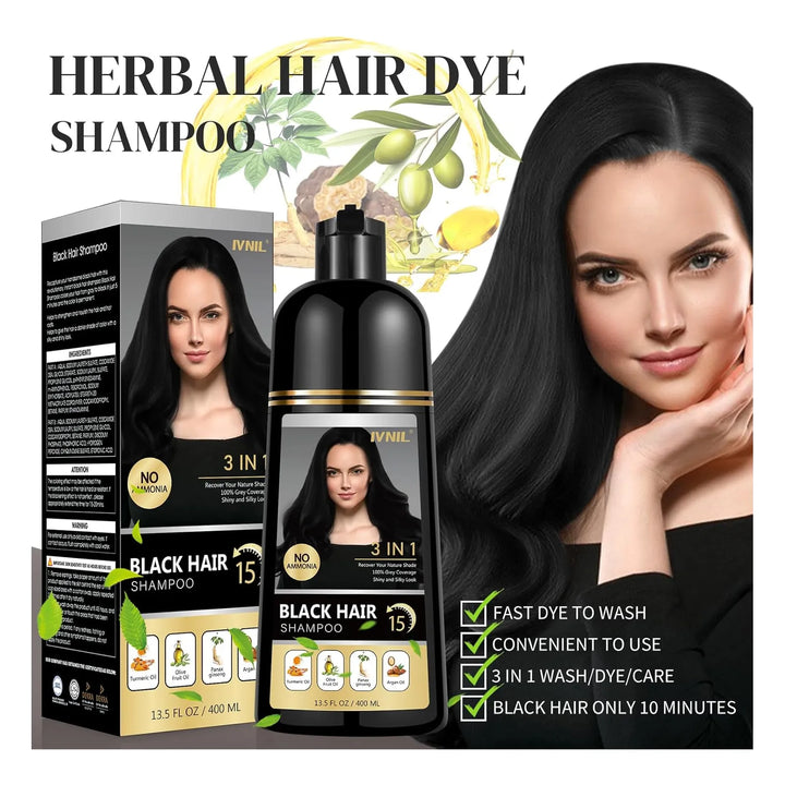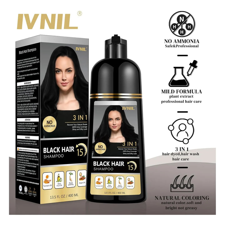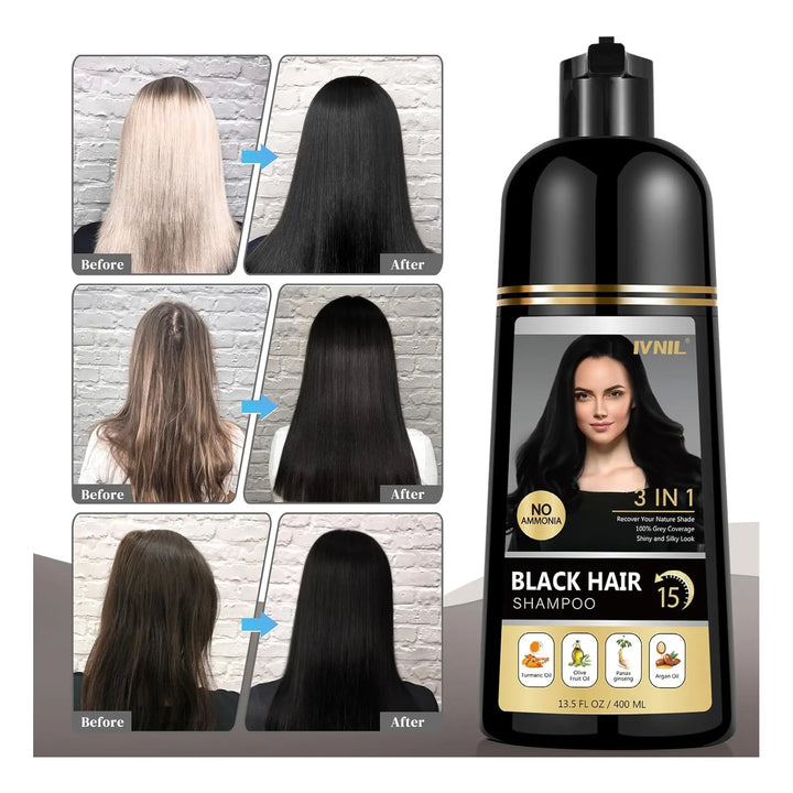 ¿Cansado de gastar tiempo y dinero en salones de belleza para cubrir esas canas rebeldes? Imagina despertar cada mañana con un cabello negro intenso, brillante y lleno de vida, sin salir de casa. Con nuestro Champú Tinte Cabello Negro Permanente 3 en 1, esa fantasía se convierte en realidad. Este innovador producto no solo te ahorra horas de espera y cientos de dólares en tratamientos, sino que también nutre tu cabello mientras lo transforma.