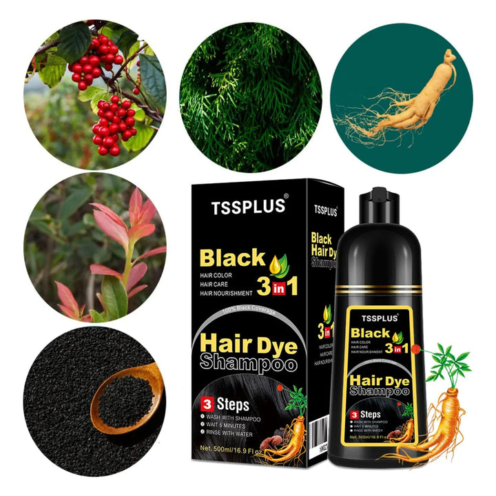 ¿Cansado de gastar tiempo y dinero en salones de belleza para cubrir esas canas rebeldes? Imagina lucir un cabello negro intenso, brillante y saludable en solo minutos, desde la comodidad de tu hogar. El champú TSSPLUS para cabello coloreado es tu solución 3 en 1: tinte, acondicionador y champú, todo en un solo producto. ¡Dile adiós a los procesos complicados y hola a un cabello juvenil sin esfuerzo!