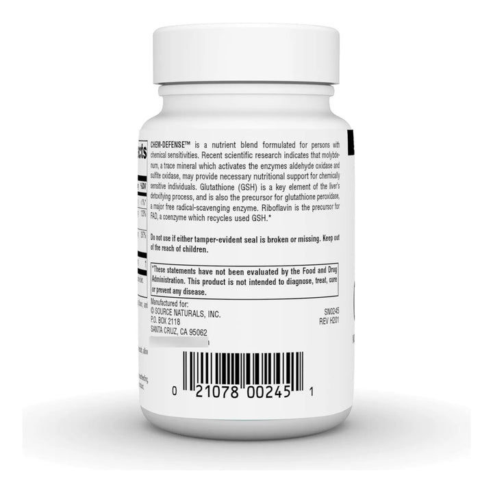 Chem-Defense actúa como un escudo nutricional, proporcionando a tu cuerpo los nutrientes esenciales que necesita para combatir los efectos de las sensibilidades químicas. Su fórmula única trabaja en sinergia para fortalecer tus defensas naturales, ayudándote a sentirte más equilibrado y protegido en tu día a día.