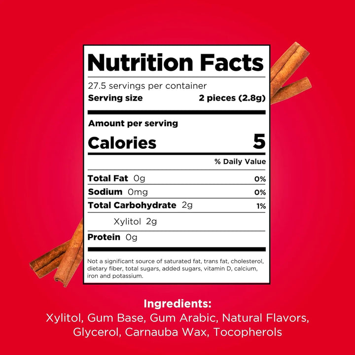 ¿Cansado de productos llenos de azúcar y químicos? Estos chicles son 100% xilitol, un edulcorante natural que no eleva los niveles de glucosa en sangre, ideal para diabéticos o quienes siguen dietas cetogénicas. Además, su intenso sabor a canela combate la sequedad bucal y estimula la producción de saliva, dejando tu boca fresca y protegida.