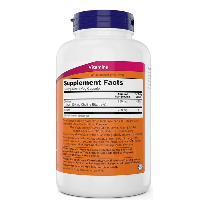Elegir NOW Choline & Inositol es elegir calidad y pureza. Sin OMG, kosher y apto para vegetarianos y veganos, este suplemento es libre de alérgenos comunes como gluten, soja y lácteos. Fabricado en instalaciones GMP, garantizamos un producto que cumple con los más altos estándares de calidad. ¿Listo para dar el primer paso hacia una versión más saludable y vibrante de ti mismo?