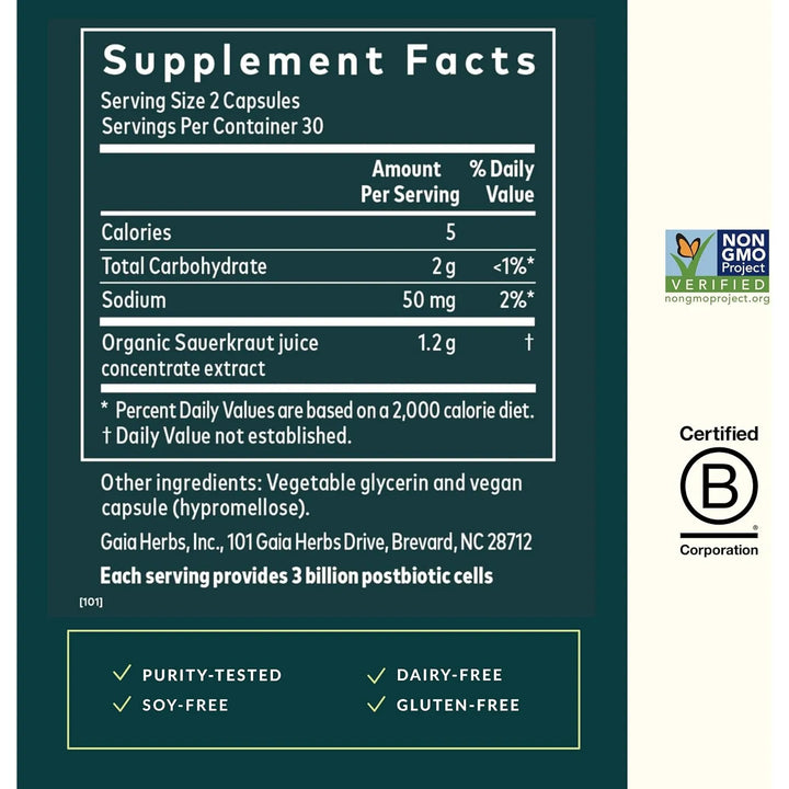 ¿Sientes que tu digestión no es la misma de antes? ¿Te preocupa tener un sistema inmunológico débil? Imagina un producto natural que no solo apoye tu intestino, sino que también fortalezca tus defensas de manera efectiva. El Chucrut Postbiótico de Gaia Herbs es la solución que estabas buscando, diseñado para transformar tu bienestar desde adentro.