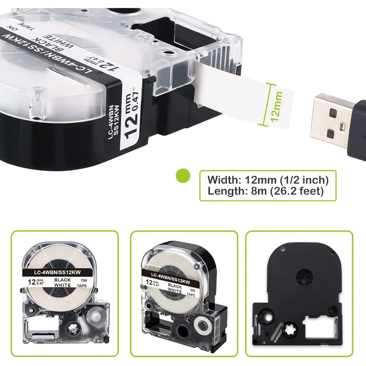 - Tamaño práctico: 12mm x 26’ (1/2 pulgada), perfecto para etiquetado detallado 📏
