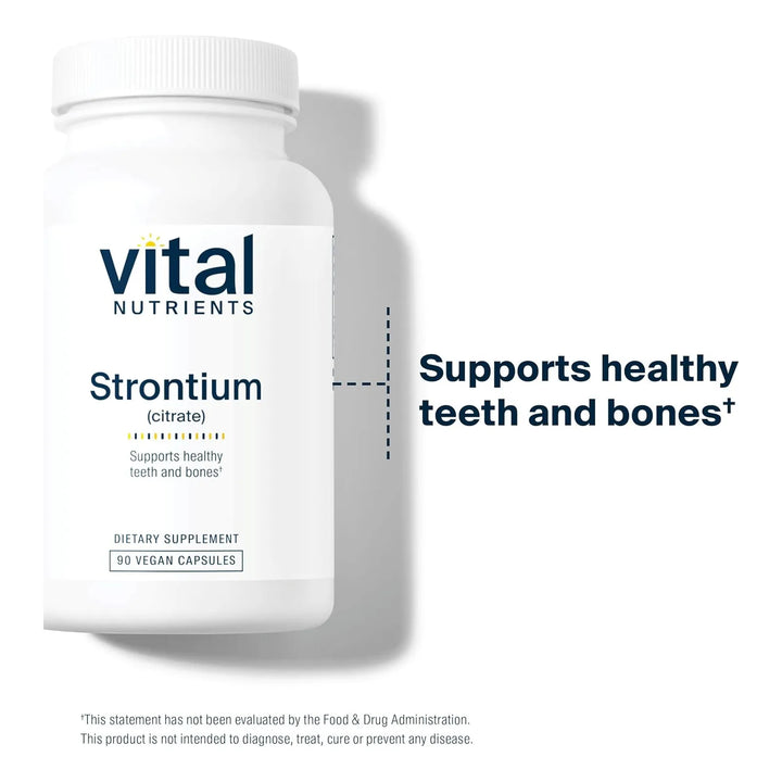 ¿Te preocupa la salud de tus huesos y dientes? Imagina un suplemento que no solo te brinde el apoyo que necesitas, sino que también sea 100% vegano, libre de alérgenos y fabricado con los más altos estándares de calidad. El Citrato de Estroncio de Vital Nutrients es tu aliado perfecto para mantener una estructura ósea fuerte y una sonrisa saludable.