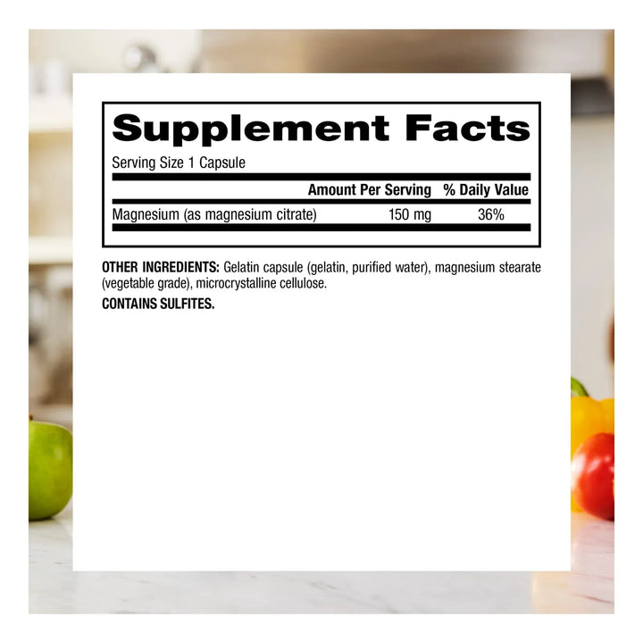 ¿Sientes fatiga constante, calambres musculares o dificultad para dormir? Estos podrían ser signos de deficiencia de magnesio, un mineral esencial que tu cuerpo necesita para funcionar correctamente. Nuestro Citrato de Magnesio de 150 mg por cápsula es la solución que estabas buscando. Con 250 cápsulas por envase, este suplemento de alta absorción está diseñado para apoyar tu bienestar general, desde huesos fuertes hasta un corazón saludable.