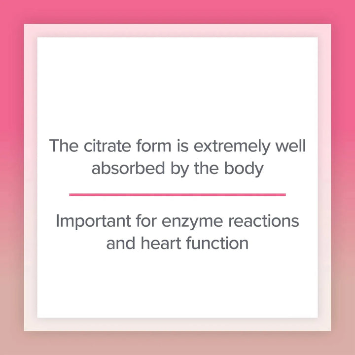 - Forma de citrato para máxima absorción y biodisponibilidad 🌟