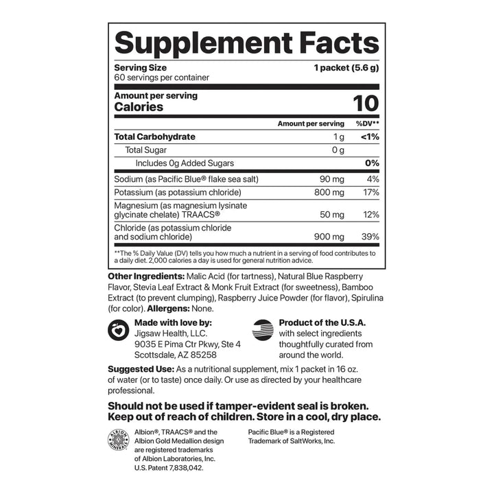 Al disolver una porción en agua, los electrolitos de alta biodisponibilidad se absorben rápidamente en tu torrente sanguíneo. El potasio actúa como regulador neuromuscular, mientras el magnesio en forma de lisinato y glicinato promueve la relajación muscular. La sal de Redmond aporta sodio natural para completar el círculo virtuoso de hidratación celular.
