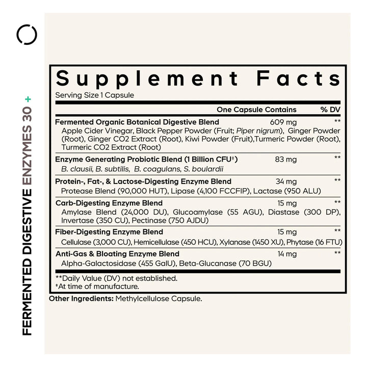 Las enzimas digestivas son proteínas especializadas que descomponen los alimentos en nutrientes más pequeños para su fácil absorción. Este producto combina enzimas pancreáticas vegetales con probióticos y prebióticos para un enfoque triple: