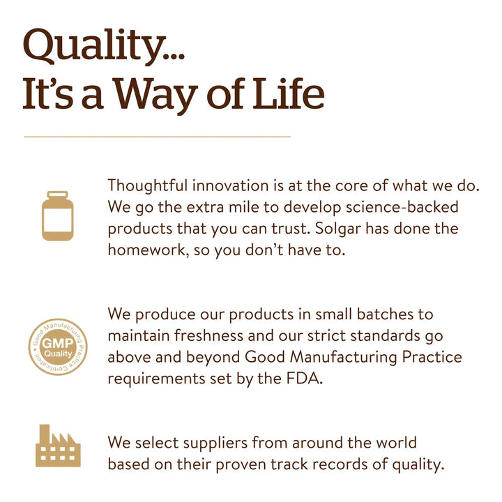 🧪 Calidad Solgar: La confianza de una marca con décadas de investigación en nutrición avanzada.