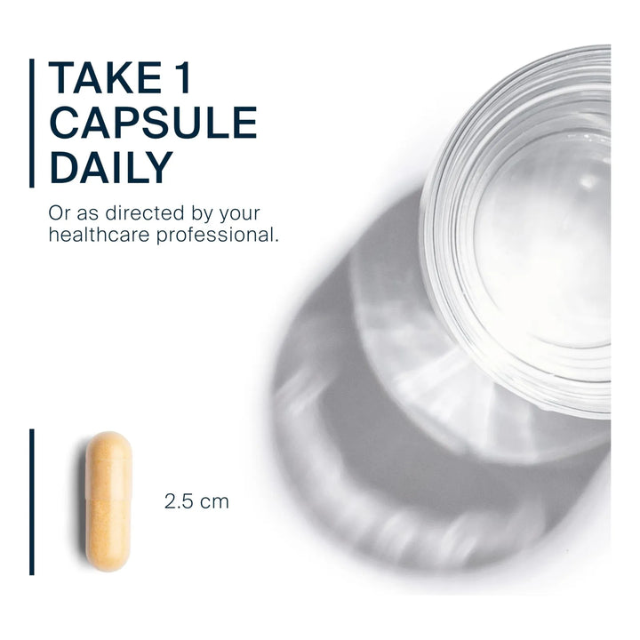 - Toma una cápsula al día, preferiblemente con una comida para una mejor absorción.