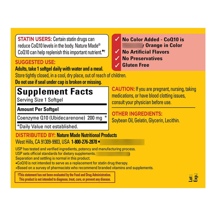 Este suplemento dietético en cápsulas blandas es más que una simple vitamina; es un antioxidante clave que ayuda a neutralizar los radicales libres, protegiendo tus células del daño diario. Con un suministro para 105 días, cada cápsula está formulada para ofrecerte la dosis óptima de CoQ10, respaldada por la farmacopea de los Estados Unidos (USP) y recomendada por farmacéuticos.