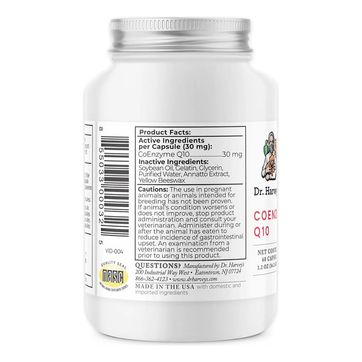 Imagina a tu compañero canino corriendo, jugando y lleno de vitalidad como cuando era más joven. La Coenzima Q10 actúa directamente a nivel celular, protegiendo su corazón y promoviendo su salud en cada etapa de su vida. Fabricado en Estados Unidos con ingredientes 100% naturales, sin conservantes ni rellenos artificiales, es la opción más segura y confiable para tu mascota.