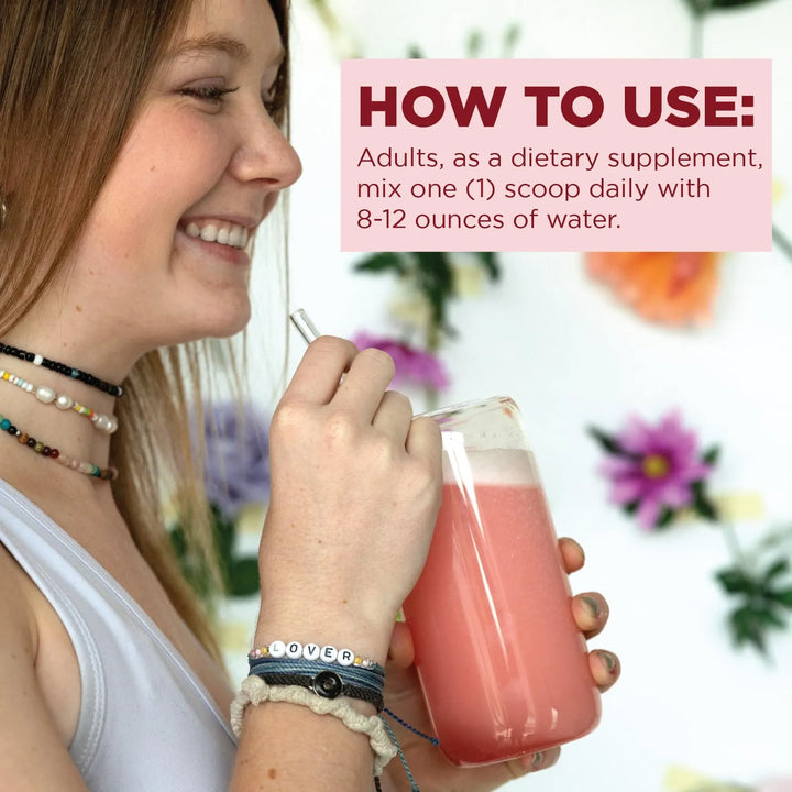 - Agrega una cucharada (incluida) a 8-12 oz de agua, jugo o batido.