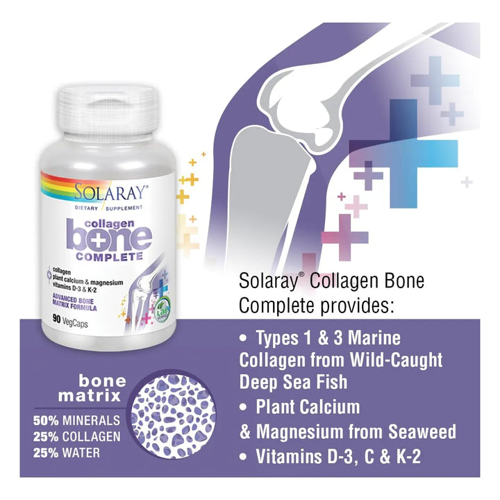 Este no es otro suplemento más. Es una fórmula galardonada, respaldada por laboratorios independientes que verifican su calidad superior. Cada cápsula vegetal contiene una combinación única de colágeno marino tipo 1 y 3, extraído de peces marinos capturados en la naturaleza, junto con un poderoso complejo de calcio vegetal, magnesio y vitaminas D3, C y K2. Juntos, estos ingredientes trabajan sinérgicamente para apoyar la producción natural de colágeno en tu cuerpo, mejorar la absorción de calcio y promover la salud ósea a largo plazo.