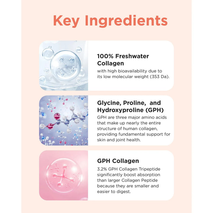 El secreto está en sus tripéptidos de bajo peso molecular, que penetran directamente en el torrente sanguíneo para estimular la producción natural de colágeno en tu cuerpo. Al reconstruir las fibras de la piel desde dentro, logras resultados duraderos: mayor elasticidad, hidratación profunda y reducción de imperfecciones.