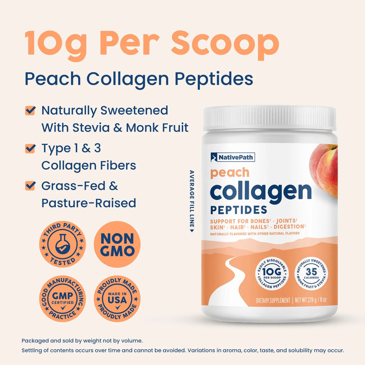 Cada cucharada de este polvo de colágeno, con su delicioso sabor a melocotón, es un paso hacia la versión más saludable de ti mismo. Formulado con los tipos de colágeno más abundantes en tu cuerpo, este producto está diseñado para apoyar desde dentro hacia fuera, mejorando no solo tu apariencia sino también tu salud digestiva y movilidad.