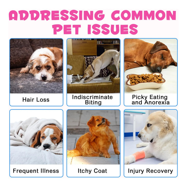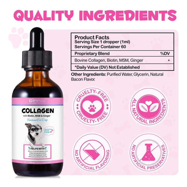 ¿Tu perro sufre de picazón constante, pelaje opaco o molestias articulares? Imagina poder devolverle la vitalidad y alegría con un solo gesto. Nuestro Colágeno Líquido para Perros con Biotina, MSM y Jengibre está diseñado para revolucionar su bienestar desde dentro hacia fuera. No es solo un suplemento, es un elixir de vida que nutre, protege y revitaliza cada célula de tu compañero peludo.