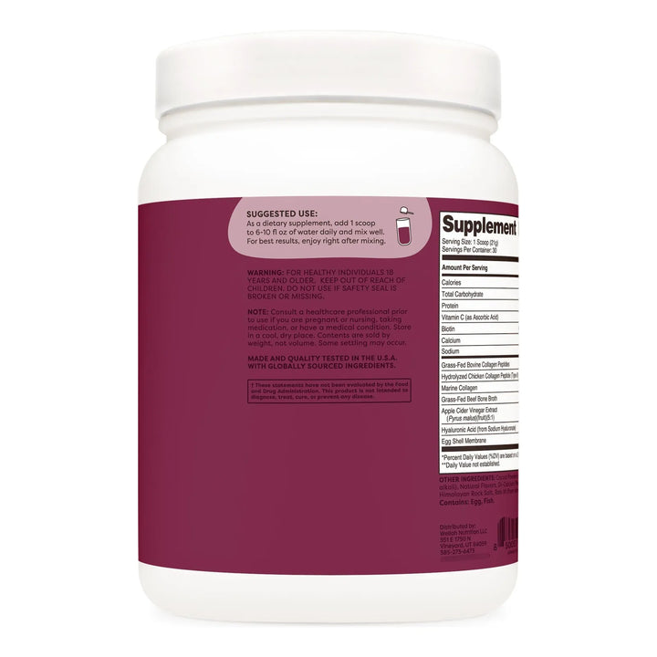 ¿Te preocupa no obtener suficiente proteína en tu dieta? Nuestro producto proporciona 0.53 oz de colágeno por porción, ayudándote a alcanzar tus metas diarias de proteína de manera deliciosa y sencilla. Fabricado con 5 tipos de colágeno, esta mezcla completa está verificada por pruebas de terceros y producida en instalaciones compatibles con GMP, garantizando la máxima calidad y seguridad para ti y tu familia.