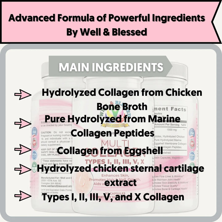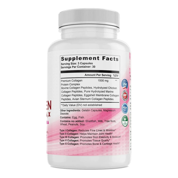 La piel pierde colágeno con la edad, provocando flacidez y líneas de expresión. ¿Te identificas? Este producto combina 5 tipos de colágeno (I, II, III, V y X) en una sola cápsula, algo que otros suplementos no ofrecen. Nutre desde dentro, regenerando tejidos y devolviendo esa elasticidad que tanto extrañas. ¿Por qué conformarte con menos?
