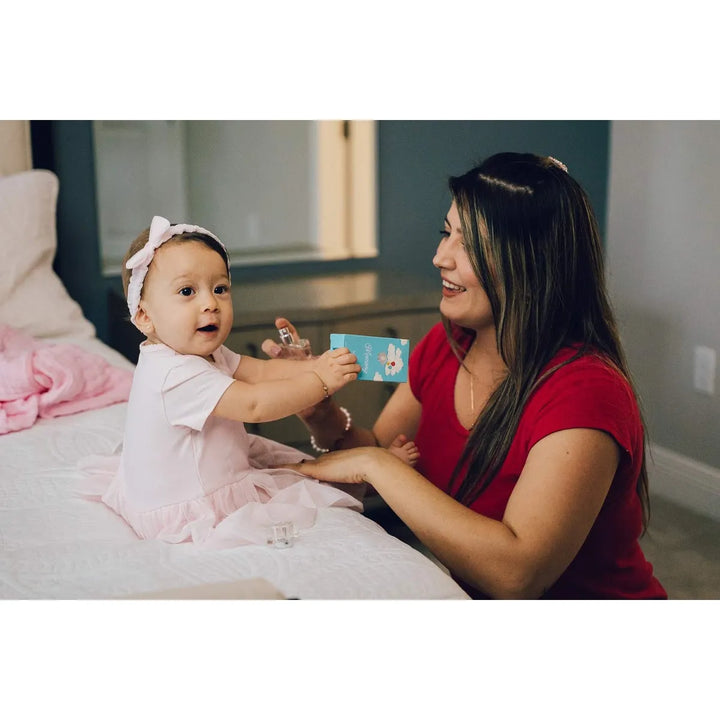 - Rocía una pequeña cantidad en las manos o directamente sobre la piel del bebé (evitando el rostro).